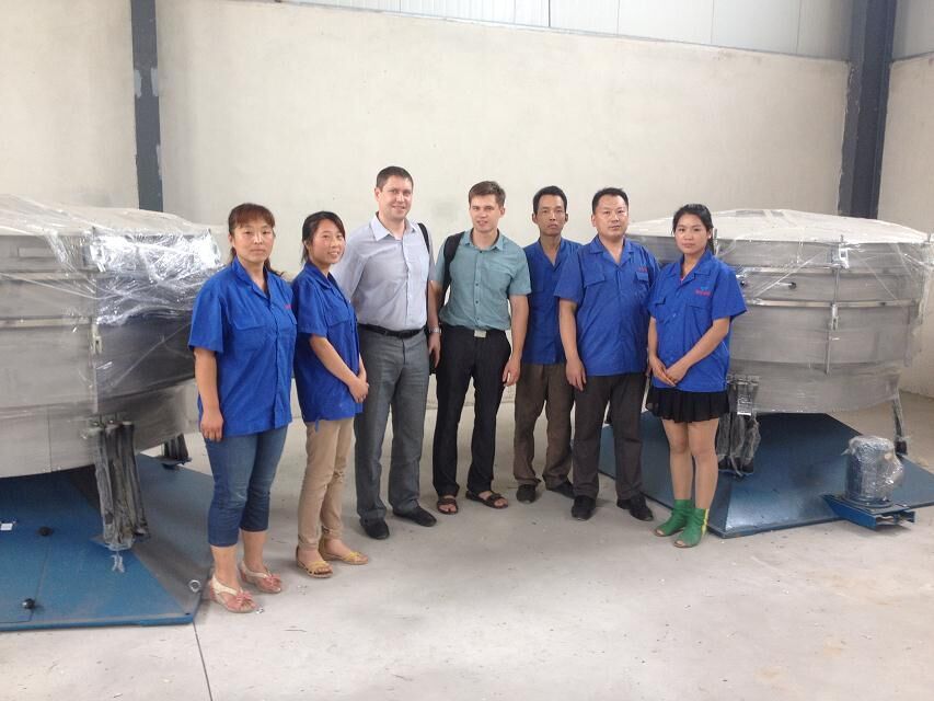 兩臺振動電機(jī)作同步相反運(yùn)動,物料受力被拋起,并向前作直線運(yùn)動。 一、影響物料在篩面上運(yùn)動軌跡的因素: 1、電機(jī)的安裝角度:角度越大物料在篩面上做拋物運(yùn)動軌跡的跨度值越大,所以 產(chǎn)量越大,相反精度越低。 2、電機(jī)的激振力:激振力的大小直接影響物料在篩面上做拋物運(yùn)動軌跡的拋物高度值。另,兩臺電機(jī)的激振力必須是相等的: 3、篩機(jī)的自身高度:可設(shè)計(jì)正、負(fù)角兩種方案。 二、篩網(wǎng)的安裝 1、單層篩網(wǎng):適合比較好篩、物料比重較輕和要求篩網(wǎng)目數(shù)不大的物料。 2、子母網(wǎng)(托網(wǎng)加篩分網(wǎng)):適合比較好篩、物料比重較重和要求篩網(wǎng)目數(shù)不大的物料。 3、單層帶彈球:適合不太好篩容易堵網(wǎng)需要彈球清網(wǎng)和物料比重較輕的物料。 4、子母網(wǎng)帶彈球(托網(wǎng)加篩分網(wǎng)加彈球):適合不太好篩容易堵網(wǎng)需要彈球清網(wǎng)和物料比較重的物料。 三、網(wǎng)架材質(zhì): 1、木質(zhì)網(wǎng)架:制造成本低,換網(wǎng)方便,篩網(wǎng)的損壞幾率較低,密封性相對略好 2、鋼質(zhì)網(wǎng)架:物料有特殊要求時(shí),物料比重過高和顆粒較大的 四、適合篩分的物料和目數(shù): 1、石英砂:10目、20目、40目、80目、120目; 2、活性碳:6目、16目、24目、48目; 3、石粉:6目、16目、24目、48目; 4、耐火材料:10mm、8mm、5mm、1mm、40目、120目。