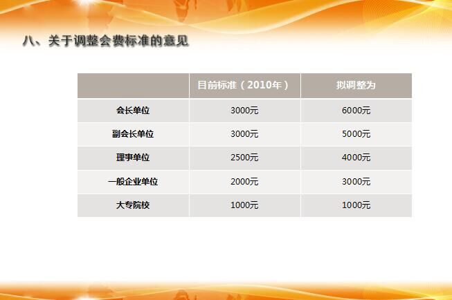 會議第八項議題,在協(xié)會調(diào)整會費標準的意見上,佛山市云雀振動器有限公司劉袁平總經(jīng)理提出根據(jù)會議預算來對會費標準進行調(diào)整,方圓集團何總表示贊同,其他理事單位也都全票通過會費調(diào)整意見。