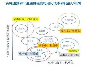 從圖上我們也發(fā)現(xiàn)一個過去沒有重視的地方,就是挖掘機(jī)。它其實(shí)應(yīng)該是電動經(jīng)濟(jì)效益最大,而成本最低的機(jī)械!