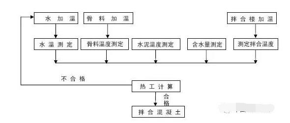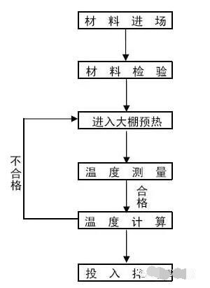 5.3根據(jù)計算結(jié)果進行判定,若計算結(jié)果表明拌和后的混凝土溫度復(fù)核驗標(biāo)要求,那么可立刻進行混凝土拌和,若計算結(jié)果表明拌和后的溫度不能達到驗標(biāo)要求,通過水加溫等手段提高各原材料溫度,重新進入下一道工序。