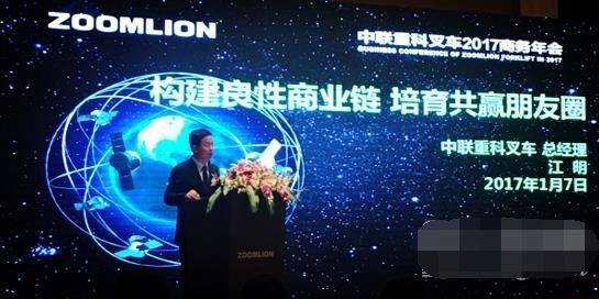 當(dāng)日,江明總經(jīng)理在大會上表示,中聯(lián)重科工業(yè)車輛已經(jīng)搭建了良好的商業(yè)生態(tài)鏈,并建立了以“誠信、共贏、協(xié)同、競爭”為商業(yè)觀的朋友圈。2017年中聯(lián)叉車的經(jīng)營定位是:進一步夯實產(chǎn)品、渠道基礎(chǔ)。注重規(guī)模與效益之間的平衡,強化商業(yè)鏈的良性運營。國內(nèi)市場在風(fēng)險可控的前提下,注重培育、扶持“朋友圈”代理和客戶,穩(wěn)固市場地位。