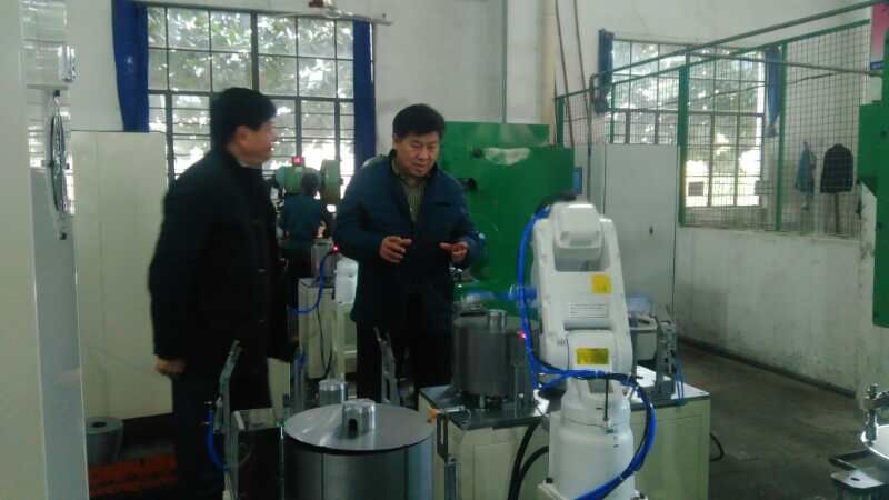 走出會(huì)議室,孫總和胡部長陪同符會(huì)長一行參觀公司生產(chǎn)車間,走到機(jī)加車間,符會(huì)長一下子就被“機(jī)器人操作完成錐形電機(jī)定子沖槽工作”工位所吸引,孫總講,這個(gè)工位以前都是人工操作,勞動(dòng)強(qiáng)度很大,現(xiàn)在正在全力推進(jìn)工位機(jī)器人操作,不久將會(huì)全部用機(jī)器人替代。