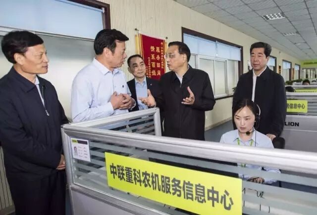 5月8日,中共中央政治局常委、國務(wù)院總理李克強(qiáng)一行來到中聯(lián)重科開封工業(yè)園,先后考察了農(nóng)機(jī)裝備制造基地、中聯(lián)重科服務(wù)信息中心等。