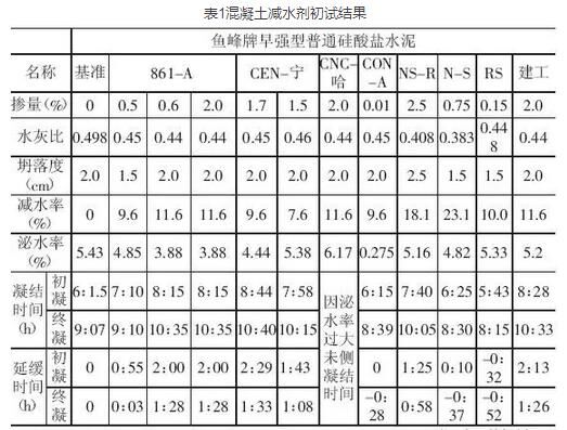 表1混凝土減水劑初試結果