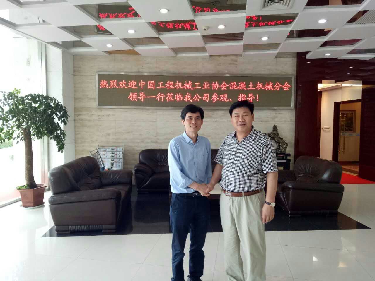 2017年6月5日,中國(guó)工程機(jī)械工業(yè)協(xié)會(huì)混凝土機(jī)械分會(huì)符忠軒會(huì)長(zhǎng),應(yīng)武漢港迪電氣集團(tuán)有限公司李小松總經(jīng)理的邀請(qǐng),參觀考察了武漢港機(jī)集團(tuán)有限公司,一進(jìn)公司大門,就看見(jiàn)幾個(gè)醒目的大字:熱烈歡迎中國(guó)工程機(jī)械工業(yè)協(xié)會(huì)混凝土機(jī)械分會(huì)領(lǐng)導(dǎo)一行蒞臨我公司參觀、指導(dǎo)。李小松總經(jīng)理等領(lǐng)導(dǎo)熱情向前迎接符會(huì)長(zhǎng)一行并進(jìn)行了座談交流。