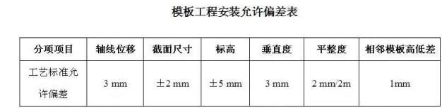 模板安裝、預埋件及預留孔施工允許偏差見《模板安裝、預埋件、預留孔允許偏差表》
