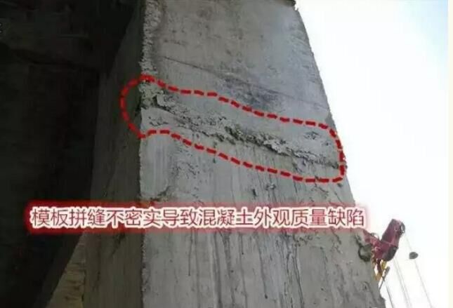 (3)混凝土配合比不當,產(chǎn)生離析,模板部位缺漿或模板漏漿。