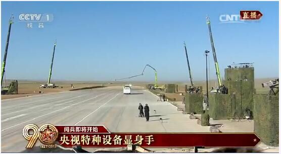 大閱兵直播鏡頭中在高空俯拍閱兵隊伍意氣奮發(fā)的行進畫面,是由名為“天鷹”攝像系統(tǒng)拍攝的。“天鷹”系統(tǒng)的定位支撐采用中聯(lián)重科兩臺ZTC大型汽車起重機,架起高度為30米由南向北的300米拍攝索道,通過攝像設(shè)備在索道間來回穿梭拍攝,將下方的壯觀景象一覽無余。