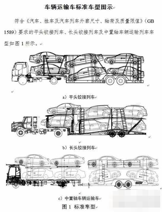 各地交通運輸主管部門要加強對符合國家標準要求的平頭鉸接列車、長頭鉸接列車、中置軸車輛運輸列車(車輛圖示見附件3)的宣傳,保障合規(guī)車輛運輸車順利通行。上述車輛在通行高速公路時,各地交通運輸執(zhí)法人員、收費人員不得以未在申報系統(tǒng)內(nèi)申報等理由拒絕其駛入高速公路或進行處罰。對于中置軸車輛運輸車,裝載高度參照載運標準集裝箱的車輛執(zhí)行。