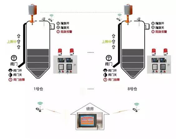 終端集成了料位報警功能,實(shí)現(xiàn)了一對一的料位報警;