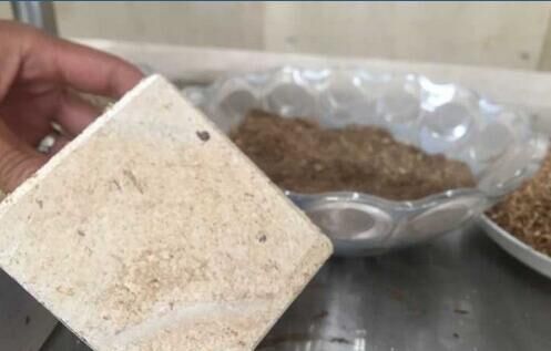 上生產(chǎn)出來(lái)的鋼鈣秸稈實(shí)心墻板已擺放得整整齊齊。“這些機(jī)器‘吃’進(jìn)去的是秸稈,‘吐’出來(lái)的是墻板,正適合當(dāng)作建筑外墻屋面材料?!痹摴窘?jīng)理文華銀拿出了一塊墻板樣品,側(cè)切面能清晰地看到秸稈碎屑。盡管摸上去第一感覺像木頭,但用手使勁兒敲打卻能感受到足夠的硬度,“每平米墻板所含的秸稈能達(dá)到60%至80%。”