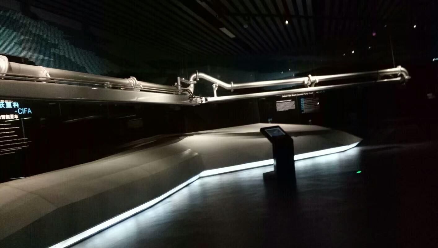 引導人員還特別向我們介紹了中聯(lián)的科技產品——碳釬維臂架,相比較鋼鐵材質的臂架,同樣大小體積的臂架,碳纖維臂架只有傳統(tǒng)臂架五分之一的重量,完美的解決了臂架長度問題,這一產品的出世,展示了中聯(lián)在技術方面不斷的鉆研和追求。