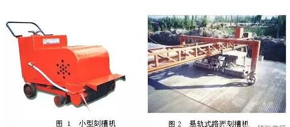 刻槽施工工藝比較簡單,只要合理使用適宜寬度(不窄于500mm)和重量的刻槽機械,刻槽質量一般均可保證。