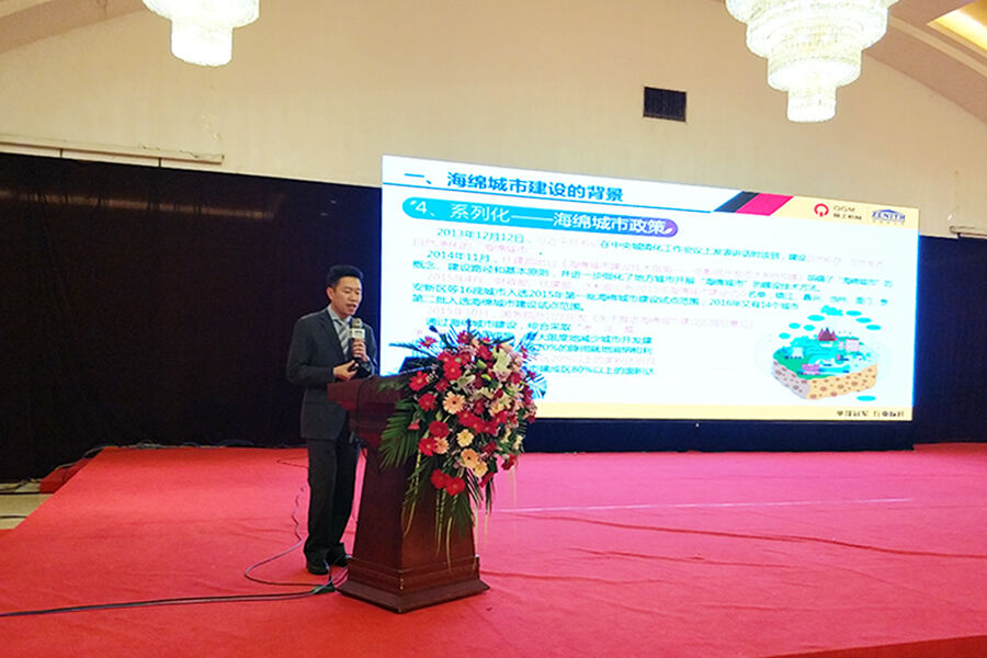 傅國(guó)華也帶來(lái)題為《固體廢棄物制品在海綿城市建設(shè)的應(yīng)用》的專(zhuān)題報(bào)告,他從海綿城市建設(shè)的背景、建筑垃圾生產(chǎn)透水磚的應(yīng)用等方面介紹了固體廢棄物制品在海綿城市建設(shè)的應(yīng)用相關(guān)問(wèn)題。