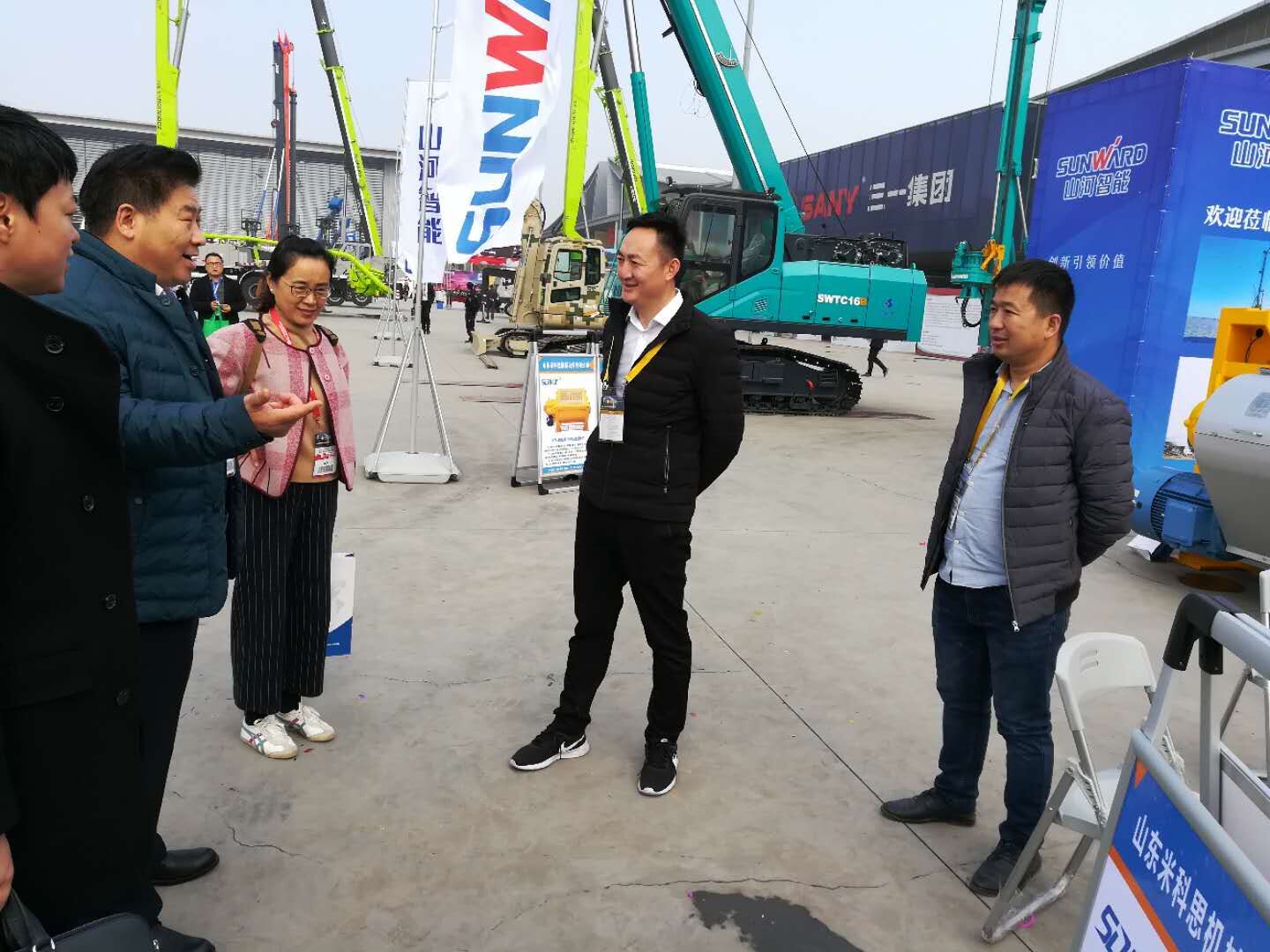 在2017長沙配博會上中國工程機(jī)械工業(yè)協(xié)會混凝土機(jī)械分會符忠軒會長及秘書長易君在砼商網(wǎng)劉娟女士的陪同下走訪參展會員單位。