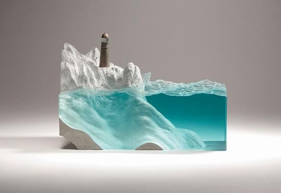 水、陸地、巖石被這位來自悉尼的雕塑家Ben Young用玻璃和混凝土打磨得惟妙惟肖,逼真同時很藝術(shù)。Ben Young出生在新西蘭,從事玻璃雕塑制作已有10多年的時間。他的作品看上去嚴(yán)絲合縫,精確細(xì)膩,盡管是混凝土這種粗糙的材料,也被打磨得如奶油般光滑。