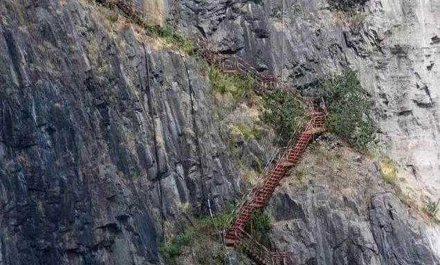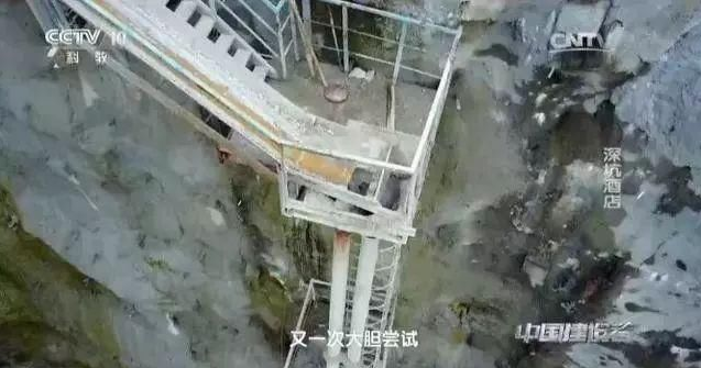 這么深的坑,又是懸崖峭壁,工人們花在從平地到坑底的時(shí)間實(shí)在太多了,根本沒法兒正常施工。之后,他們便試探著修了棧道,但這么險(xiǎn)的崖壁,載重極其有限,效率也沒有提高多少。