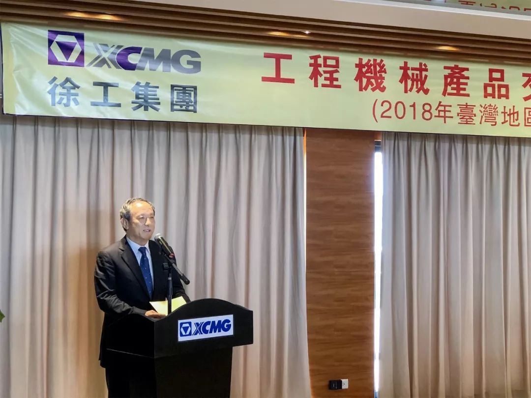 王民董事長先生在現(xiàn)場發(fā)表了熱情洋溢的講話。他回顧了徐工集團在臺灣市場的發(fā)展和建設歷程,并表示,徐工將按照“技術(shù)領先、用不毀”行業(yè)金標準和高端、高附加值、高可靠性、大噸位“三高一大”的產(chǎn)品戰(zhàn)略,為臺灣的客戶朋友們提供先進的、質(zhì)量完美的產(chǎn)品,為寶島臺灣的建設發(fā)揮光和熱。