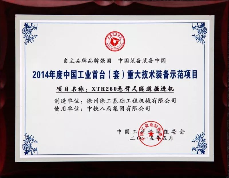 2014年6月,國內(nèi)首臺懸臂式隧道掘進機徐工XTR260研制成功,在大連等地進行隧道施工,有效提升了隧道施工質(zhì)量和效益,促進國內(nèi)隧道施工模式的轉(zhuǎn)變,填補國內(nèi)懸臂式隧道掘進機的空白;經(jīng)中國機械工業(yè)聯(lián)合會組織鑒定,其主要技術(shù)性能達(dá)到國際領(lǐng)先水平,該設(shè)備獲得江蘇省首臺套重大裝備認(rèn)定和資金支持,為2014年度中國工業(yè)首臺(套)重大技術(shù)裝備示范項目。