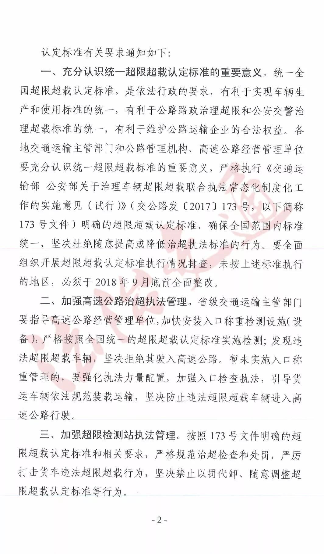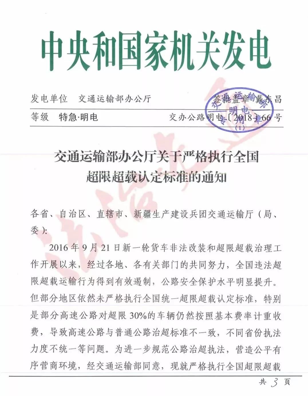 文件強調(diào):部分地區(qū)依然未嚴格執(zhí)行全國統(tǒng)一超限超載認定標(biāo)準(zhǔn),部分高速公路對超限30%的車輛仍然按照基本費率計重收費,導(dǎo)致高速公路與普通公路治超標(biāo)準(zhǔn)不一致,不同省份執(zhí)法力度不統(tǒng)一等問題。未按標(biāo)準(zhǔn)執(zhí)行的地區(qū),9月底前全面整改。