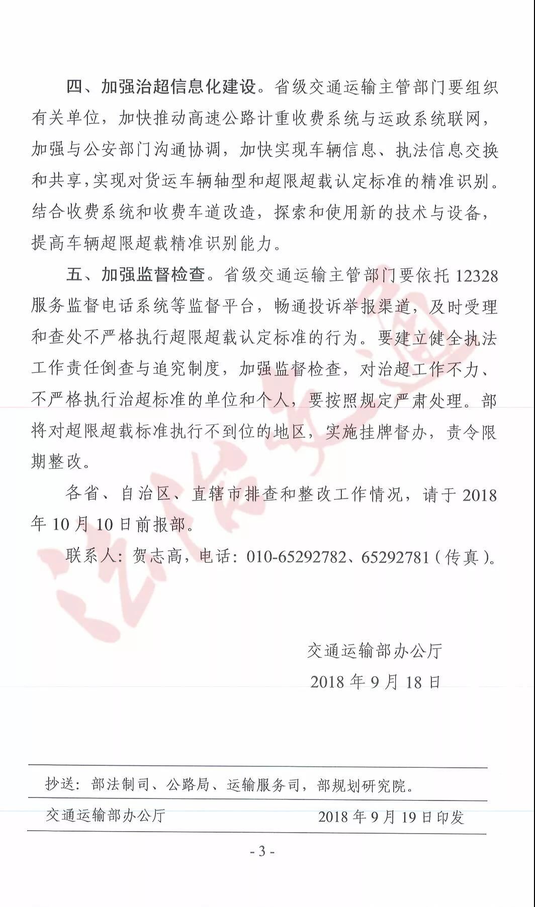 9月19日,交通部發(fā)布通知,要求嚴格執(zhí)行全國超載超限認定標(biāo)準(zhǔn)。