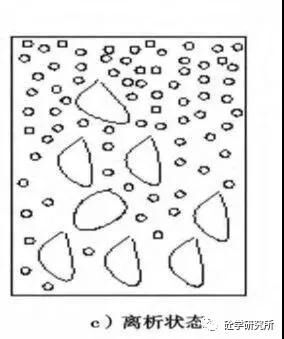 a、理想拌合狀態(tài),水泥被水充分包裹沒(méi)有游離水。