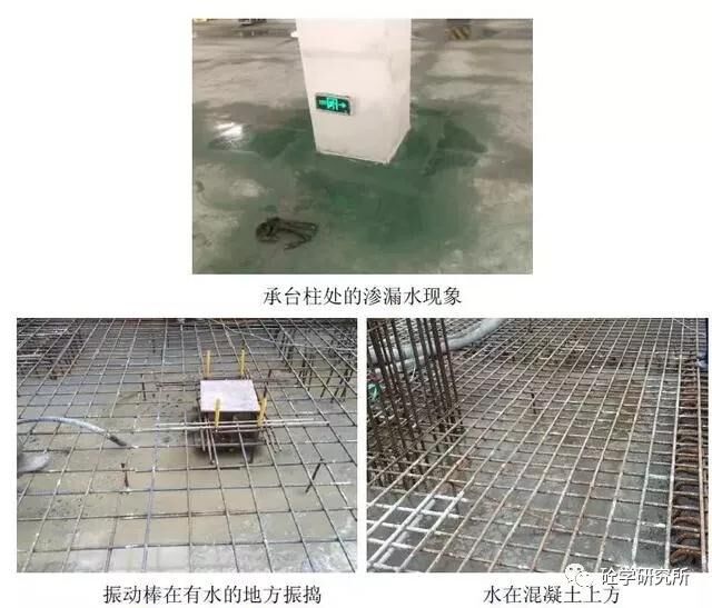 當(dāng)積水停留在混凝土表面時(shí),如振動(dòng)棒在有水的地方振搗,水會(huì)順著振動(dòng)棒棒身周邊的空隙向下流動(dòng),對(duì)混凝土造成擾動(dòng),后期易在該處形成點(diǎn)滲漏。另外,工民建領(lǐng)域,底板上的一些不規(guī)則裂縫,可能僅僅是因?yàn)檫@種薄弱的點(diǎn)過(guò)多過(guò)密集。