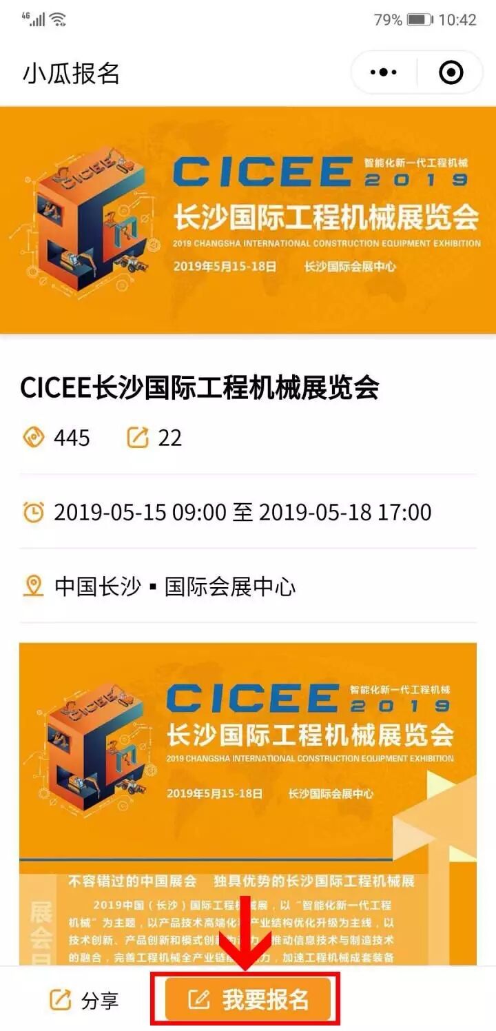 完成上述步驟,您將尊享CICEE2019長(zhǎng)沙工程機(jī)械展覽會(huì)這場(chǎng)工程機(jī)械饕餮盛宴。