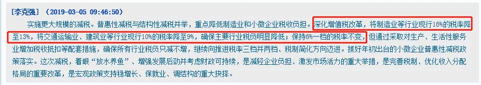 昨日上午!總理在兩會最新報告明確:1、將制造業(yè)等行業(yè)原有16%增值稅稅率降為13%,將交通運(yùn)輸、建筑、房地產(chǎn)等行業(yè)現(xiàn)行10%稅率降為9%,保持6%一檔稅率不變。2、下調(diào)城鎮(zhèn)職工基本養(yǎng)老保險單位繳費(fèi)比例,各地可降至16%!不得自行對歷史欠費(fèi)進(jìn)行集中清繳!