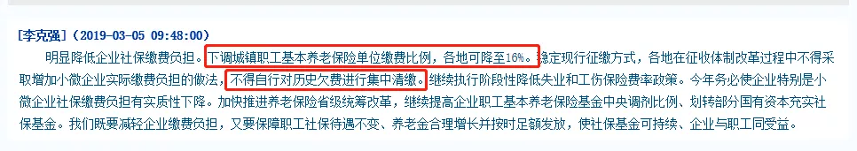 2、下調(diào)城鎮(zhèn)職工基本養(yǎng)老保險單位繳費(fèi)比例,各地可降至16%!不得自行對歷史欠費(fèi)進(jìn)行集中清繳!