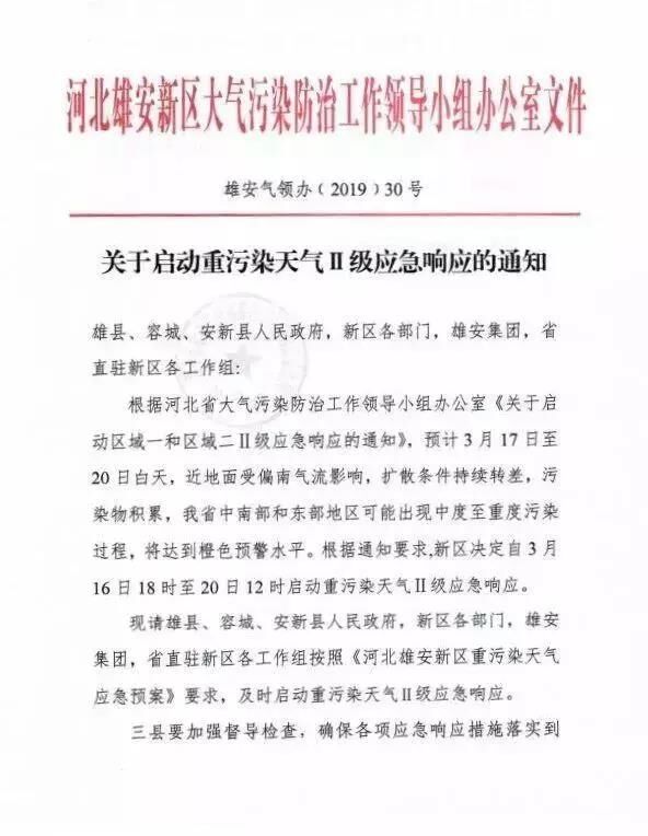 按照省大氣辦《關于啟動區(qū)域一和區(qū)域二Ⅱ級應急響應的通知》要求,根據近日氣象擴散條件,市重污染天氣應對指揮部決定自2019年3月16日18時至20日12時,全市啟動重污染天氣Ⅱ級應急響應?,F(xiàn)將有關事項通知如下: