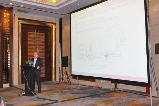 意大利普曼普(PMP)董事長(zhǎng)Luigino POZZO先生作了《全球攪拌運(yùn)輸車的發(fā)展趨勢(shì)》的主題報(bào)告,Luigino POZZO先生詳細(xì)闡述了歐洲攪拌車在以下四方面的技術(shù)發(fā)展趨勢(shì)。一是安全性(Safety),二是對(duì)環(huán)境的影響(Environmental impact),三是攪拌(混凝土)質(zhì)量(Quality of mixing),四是操作員舒適性(Ergonomics/Operatorcomfort),并提出歐洲大攪拌運(yùn)輸車(超過10立方)是意大利和北歐(荷蘭)市場(chǎng)的主流型號(hào),并已證實(shí)可以提高混凝土運(yùn)輸?shù)男?,更是用詳?xì)具體的對(duì)比數(shù)據(jù)闡述了這一結(jié)論。Luigino POZZO先生對(duì)國(guó)外攪拌運(yùn)輸車的發(fā)展趨勢(shì)的闡述給這次研討會(huì)提供了寶貴的意見。