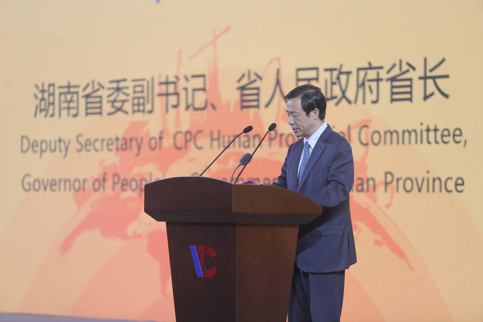 開幕式由湖南省省委常委、長沙市委書記胡衡華主持,工業(yè)和信息化部副部長辛國斌在開幕式上致辭。湯加王國駐華大使陶阿伊卡·烏塔阿圖、阿爾及利亞駐華大使艾哈?!げ脊?、南蘇丹駐華大使約翰·安德魯加·杜庫以及湖南省省領(lǐng)導張劍飛、何報翔、張健等出席。
