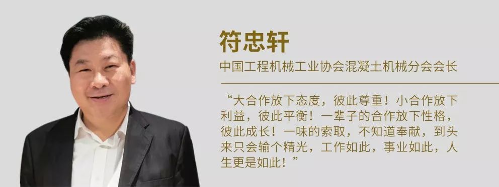 “大合作放下態(tài)度,彼此尊重!小合作放下利益,彼此平衡!一輩子的合作放下性格,彼此成長!一味的索取,不知道奉獻(xiàn),到頭來只會輸個(gè)精光,工作如此,事業(yè)如此,人生更是如此!”符會長希望行業(yè)同仁一起,以更加合作開放的心態(tài),共同推動未來工程機(jī)械行業(yè)的繁榮發(fā)展。