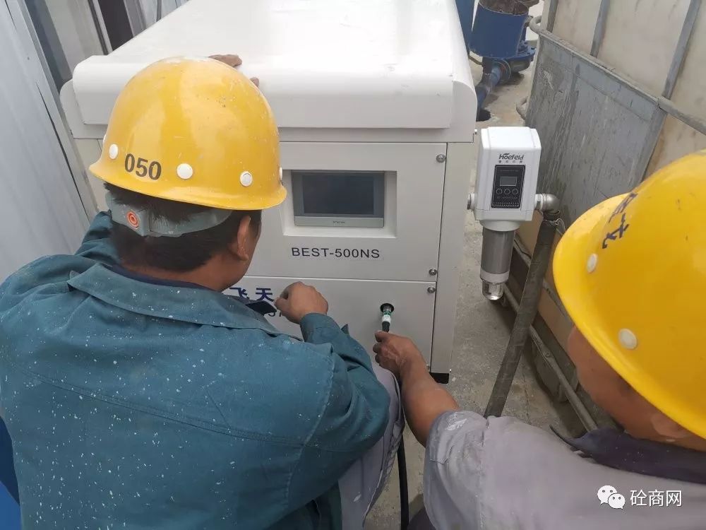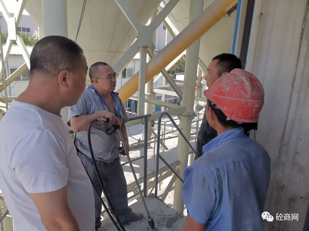 到了青島某攪拌站后,其攪拌站負(fù)責(zé)人攜站長(zhǎng)親自到現(xiàn)場(chǎng)觀看試機(jī)效果。