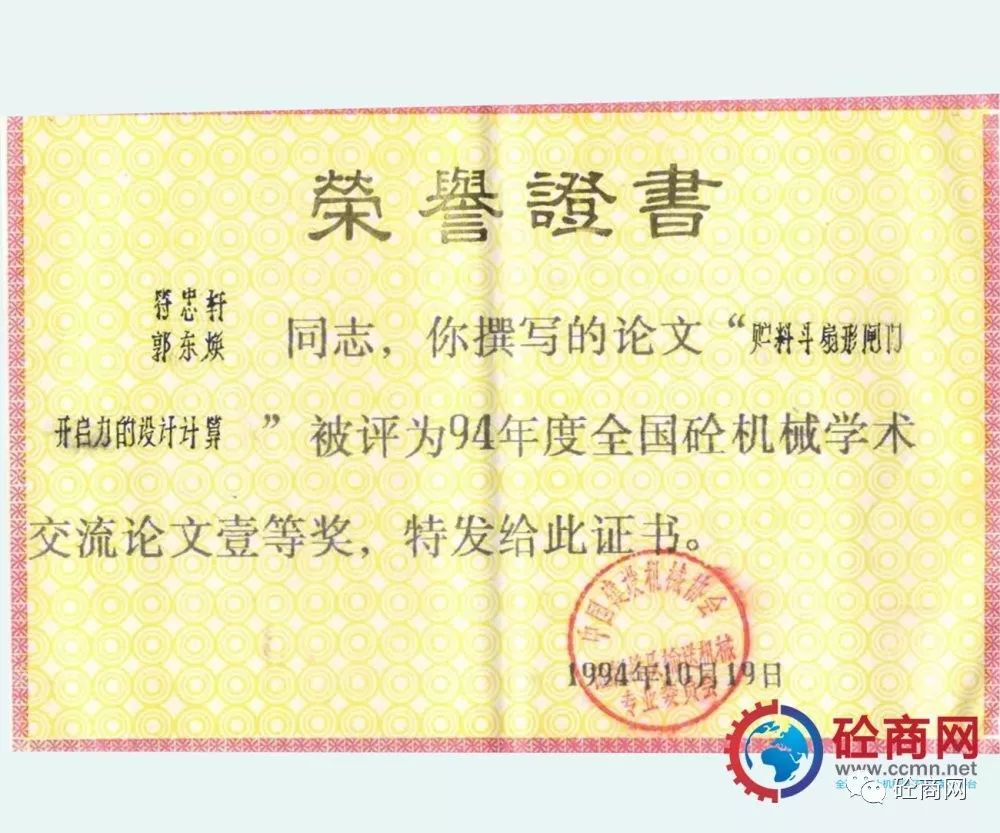 行業(yè)引領發(fā)展,研發(fā)人員積極性高。本人作為科研人員先后發(fā)表了《儲料斗扇形閘門開啟力的設計計算》被評為1994年度全國砼機械學術交流論文一等獎,本文引入“水力學半徑”的概念,較為詳盡的介紹了目前在混凝土攪拌站、配料站上大量采用的扇形閘門料斗的開啟力計算,為配料機構的設計選型提供了理論依據(jù);發(fā)表的《談裝載機上料形式混凝土配料(攪拌站)的發(fā)展》被評為1992年度全國砼機械學術交流會優(yōu)秀論文獎,本文針對當時混凝土攪拌站上料型式較多:懸臂拉鏟、鏈斗機及裝載機上料型式等,分析了國內(nèi)發(fā)展的實際,提出了裝載機上料形式為未來發(fā)展方向;1997年發(fā)表在《建設機械技術與管理》雜志第五期的《混凝土泵攪拌葉片的合理布置》,以全球量大面廣的S閥為例,分析了幾種葉片布局形式對混凝土泵吸料性的影響,設計了一種正泵送料、反泵扒料合理的攪拌葉片布局形式。