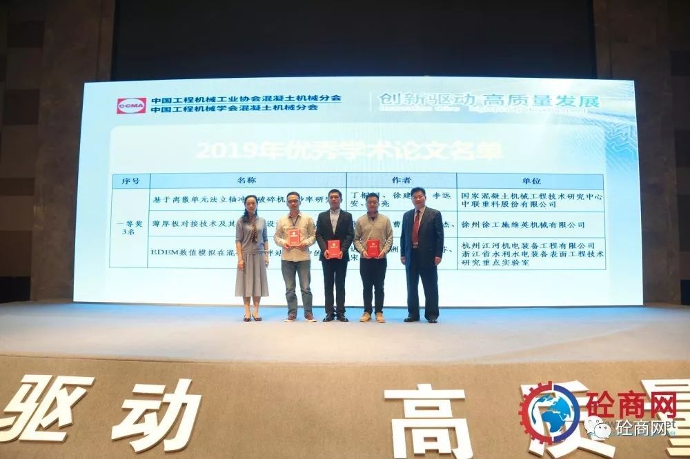 2019年的論文征集評選結果已經(jīng)揭曉,共收到參評論文26篇,其中會長單位中聯(lián)重科、國家混凝土機械技術研究中心《基于離散單元法立軸沖擊破碎機成砂率研究》等三篇論文獲得一等獎,副會長單位廊坊中建機械有限公司《混凝土攪拌站主機上蓋沾料現(xiàn)象分析與處理方法》共5篇論文獲得二等獎、中聯(lián)重科、國家混凝土機械技術研究中心《基于云邊一體的泵車油耗分析研究》等8篇論文獲得三等獎,其余10篇均獲優(yōu)秀論文獎。在此我提議:讓我們以熱烈掌聲向中聯(lián)重科、徐工施維英、廊坊中建機械有限公司三家優(yōu)秀組織單位和論文獲獎人員表示最熱烈的祝賀和最誠摯的感謝——感謝大家為中國混凝土機械行業(yè)的技術進步所做出的貢獻。