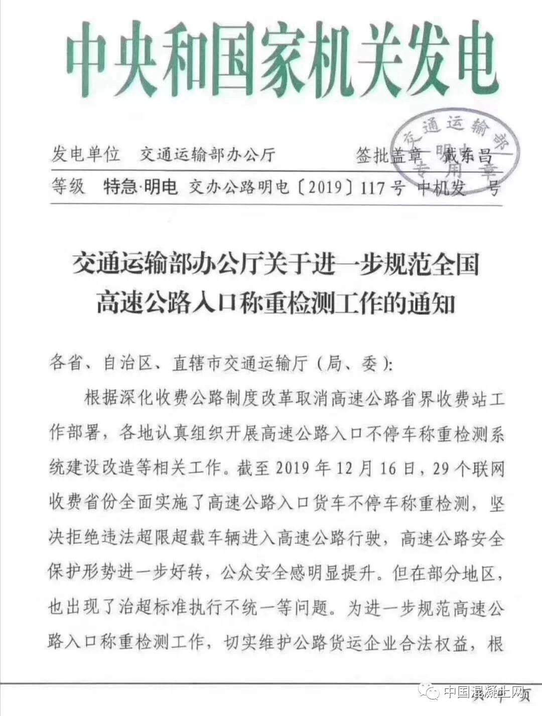 12月17日,交通運(yùn)輸部辦公廳發(fā)布特急文件《關(guān)于進(jìn)一步規(guī)范全國調(diào)整公路入口稱重檢測(cè)工作的通知》(交辦公路明電【2019】117號(hào))(以下簡稱“《通知》”)。《通知》直指全國部分地區(qū)治超標(biāo)準(zhǔn)不統(tǒng)一的問題。為進(jìn)一步規(guī)范高速公路入口稱重檢測(cè)工作,切實(shí)維護(hù)公路貨運(yùn)企業(yè)合法權(quán)益,根據(jù)相關(guān)法律法規(guī)和規(guī)定,有關(guān)通知如下: