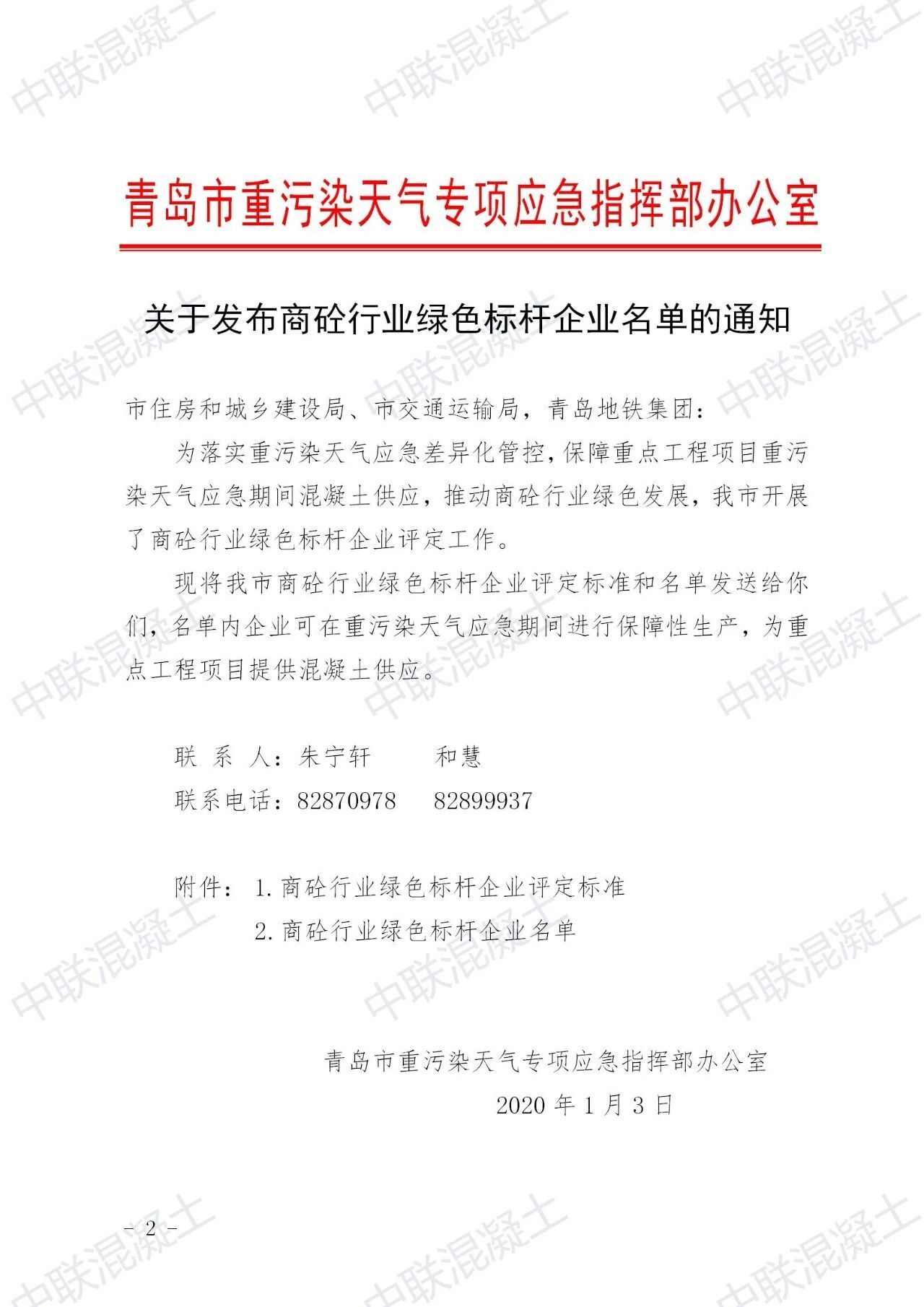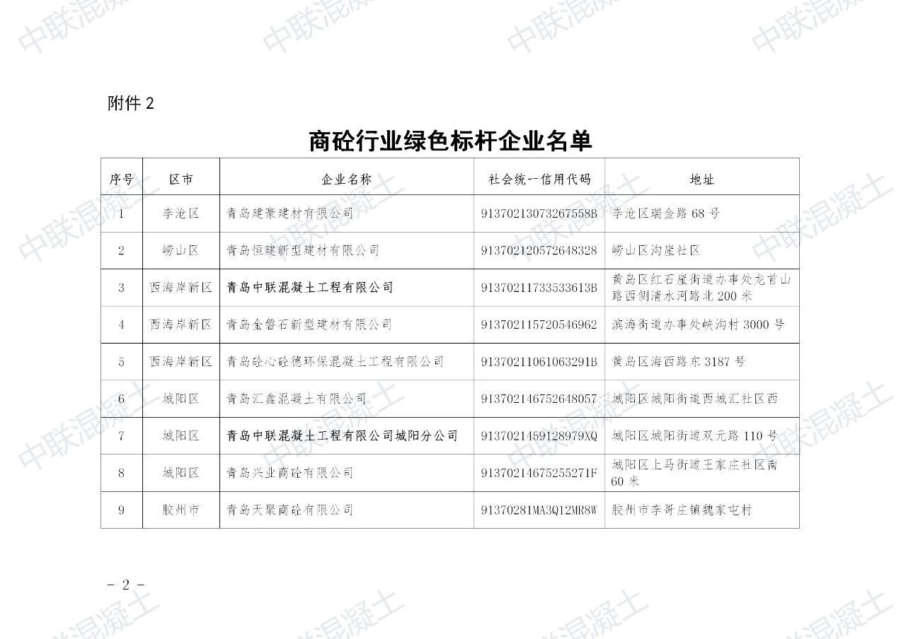 2020年1月3日,青島市重污染天氣專項應急指揮部辦公室發(fā)布商砼行業(yè)綠色標桿企業(yè)名單,全市170余家混凝土企業(yè)僅有15家通過評定,青島中聯混凝土和城陽分公司獨占2席。