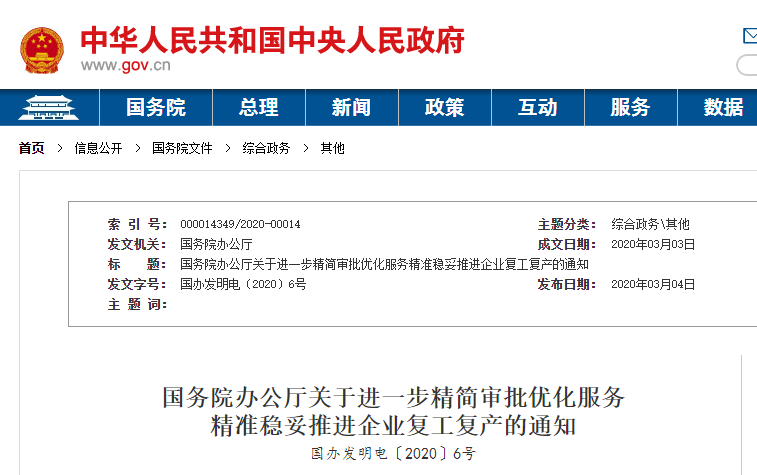 為貫徹落實(shí)黨中央關(guān)于統(tǒng)籌推進(jìn)疫情防控和經(jīng)濟(jì)社會(huì)發(fā)展工作的決策部署,深化“放管服”改革,取消不合理審批,規(guī)范審批事項(xiàng)和行為,提供便利服務(wù),精準(zhǔn)穩(wěn)妥推進(jìn)企業(yè)復(fù)工復(fù)產(chǎn),現(xiàn)就除湖北省、北京市以外地區(qū)復(fù)工復(fù)產(chǎn)有關(guān)事項(xiàng)通知如下: