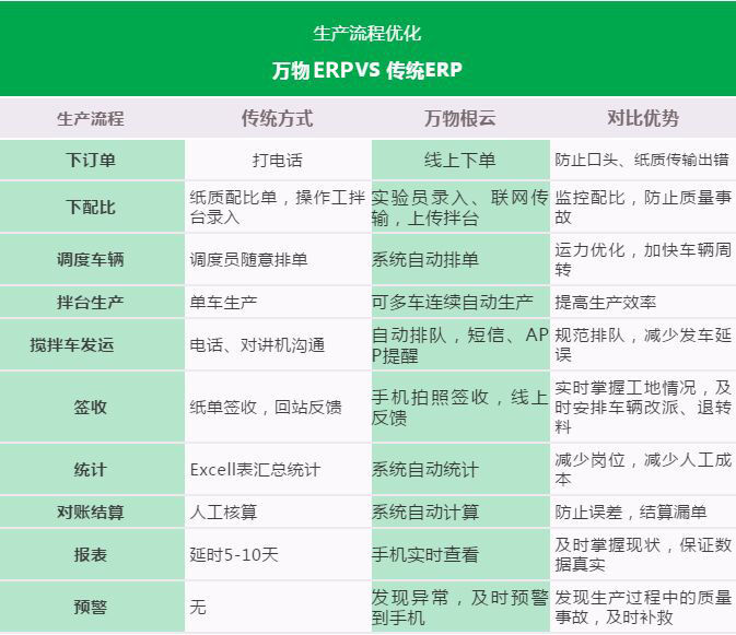 萬(wàn)物ERP依托工業(yè)互聯(lián)網(wǎng)平臺(tái)技術(shù),將攪拌站大部分工作人員從攪拌站現(xiàn)場(chǎng)解放出來(lái),在總部、在工地、在家中,不分白天黑夜,均能參與生產(chǎn)管理。