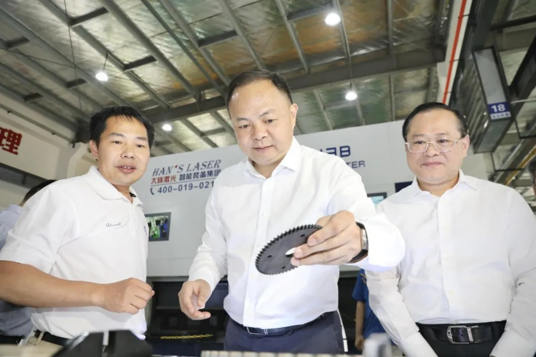 全國人大代表鄭建新(中)在湖南大族智能裝備有限公司調(diào)研