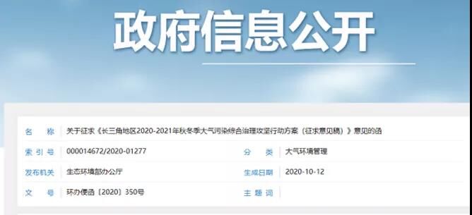 長三角地區(qū)2020-2021年秋冬季大氣污染綜合治理攻堅(jiān)行動方案