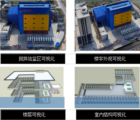 通過(guò)3D可視化技術(shù)手段,實(shí)現(xiàn)攪拌站全場(chǎng)景3D仿真可視瀏覽。場(chǎng)景構(gòu)建包括攪拌站監(jiān)區(qū)場(chǎng)景、樓宇外觀、樓層、室內(nèi)結(jié)構(gòu)、特定設(shè)備內(nèi)部等各層級(jí)場(chǎng)景的可視化。