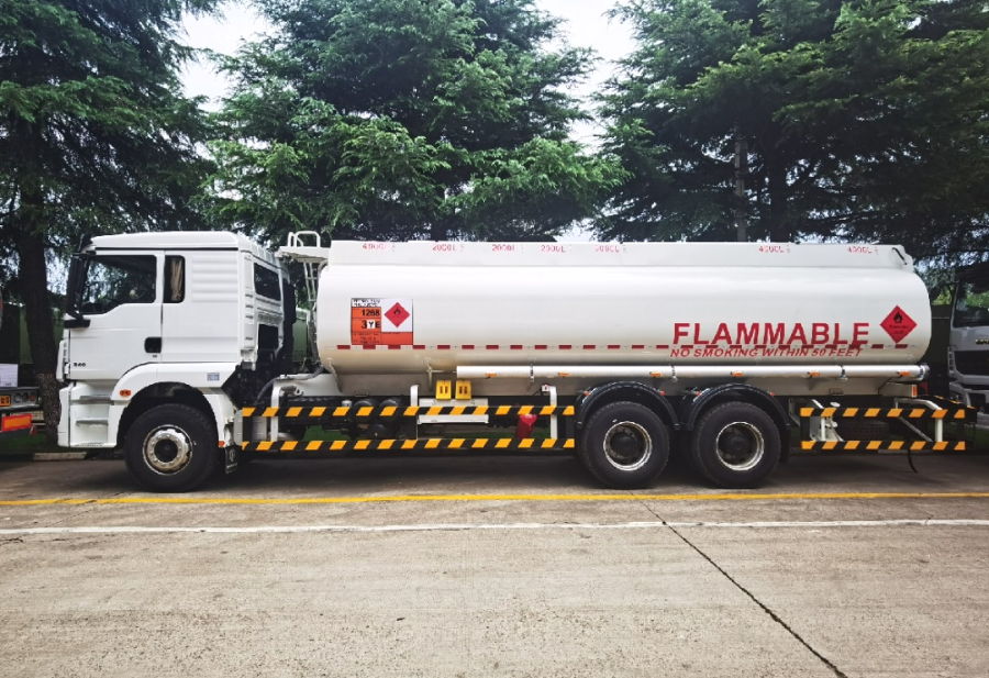 管道及裝卸料裝置均采用碳鋼材質(zhì);底部配備了油氣回收、防溢流等裝載系統(tǒng);整車匹配合理,質(zhì)量穩(wěn)定,性能可靠。這份誠意滿滿的“中國制造大禮包”贏得當(dāng)?shù)乜蛻艚豢诜Q贊。