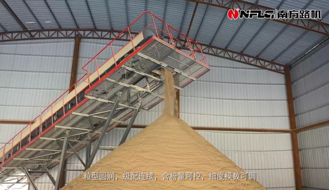 △試驗(yàn)現(xiàn)場(chǎng)采用南方路機(jī)V7制砂設(shè)備生產(chǎn)的機(jī)制砂