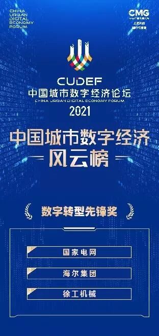 論壇上,《中國城市數(shù)字經(jīng)濟風(fēng)云榜》榮耀發(fā)布。榜單包括“城市數(shù)字經(jīng)濟競爭力綜合排名”,同時多項重磅獎項發(fā)布,“數(shù)字賦能先鋒獎”“數(shù)字轉(zhuǎn)型先鋒獎”“數(shù)字應(yīng)用方案獎”。徐工機械與國家電網(wǎng)、海爾集團同時榮獲“數(shù)字轉(zhuǎn)型先鋒獎”,成為唯一入選的工程機械制造企業(yè)。