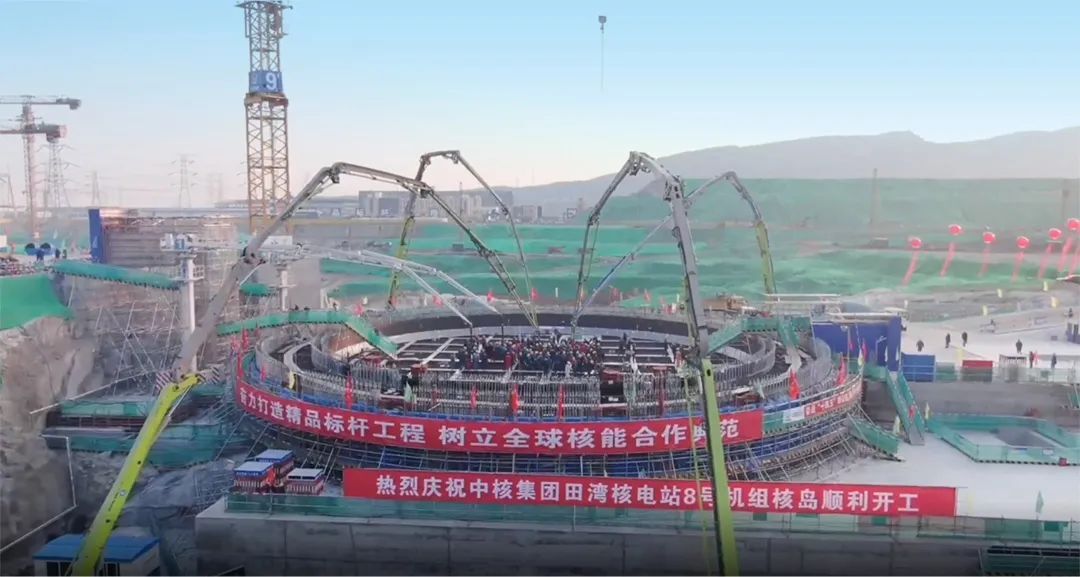 2月25日,田灣核電8號機(jī)組核島反應(yīng)堆廠房筏基底板開始澆筑第一罐混凝土,標(biāo)志著8號機(jī)組主體工程開工,這是2022年我國開工建設(shè)的首臺(tái)核電機(jī)。核電工程建設(shè)要求嚴(yán)格,施工設(shè)備、建設(shè)過程遵循極高標(biāo)準(zhǔn),尤其是混凝土生產(chǎn)制備和輸送澆筑,對于計(jì)量精度,溫度控制和泵送連續(xù)性要求極高,不僅要求設(shè)備供應(yīng)商有過硬的產(chǎn)品技術(shù),還需要優(yōu)良的穩(wěn)定性以及細(xì)致全面的服務(wù),中聯(lián)重科混凝土泵車當(dāng)仁不讓,全套包攬泵送施工。目前,我國自主品牌混凝土機(jī)械已經(jīng)完全替代進(jìn)口,擔(dān)負(fù)起核電施工重任。