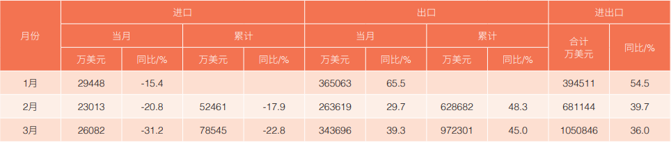 (1)在復(fù)雜多變的國際政治、經(jīng)濟、市場環(huán)境下,我國工程機械在去年出口總額340億美元的基礎(chǔ)上,今年一季度繼續(xù)呈現(xiàn)較高增長速度,一季度各月出口均創(chuàng)當(dāng)期歷史最高水平,呈現(xiàn)出較強的韌性。