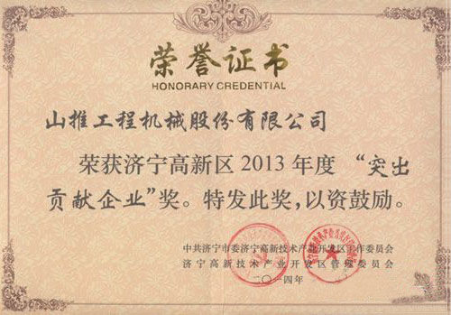 山推全年在區(qū)內的科技創(chuàng)新與技術發(fā)展方面起到了輻射帶動作用,財政貢獻顯著,為全區(qū)經濟社會又好又快發(fā)展做出了突出貢獻。根據(jù)《濟寧高新區(qū)管委會關于鼓勵企業(yè)創(chuàng)新發(fā)展的若干規(guī)定》(濟高新管發(fā)【2012】32號)文件精神,公司被授予“突出貢獻企業(yè)”與“專利特別獎”,同時獲得一項科技進步獎與行業(yè)標準獎勵,研究總院副院長周士建博士榮獲“551人才”稱號。